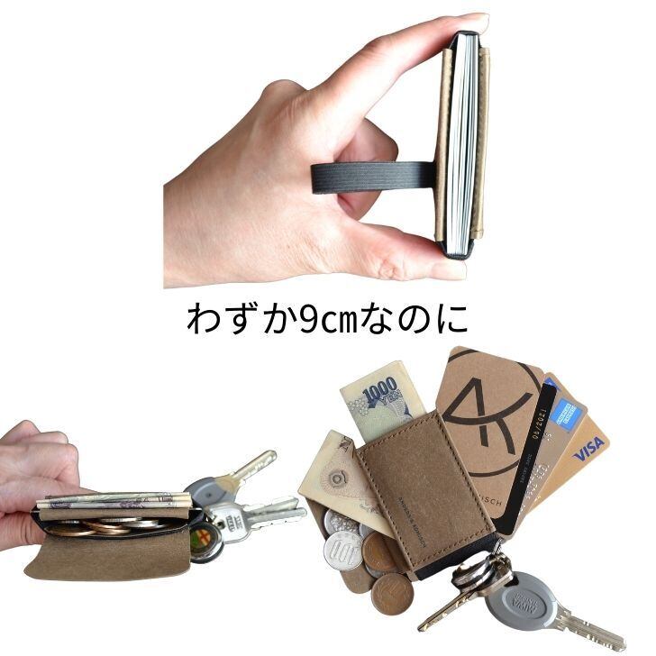 【Basic】【送料無料】A&Kミニ財布 ヴィーガン レザー (キーチェーンプレートなし・キーチェン小袋つき)カード・お札・コイン収納 ミニ財布 ミニマル財布